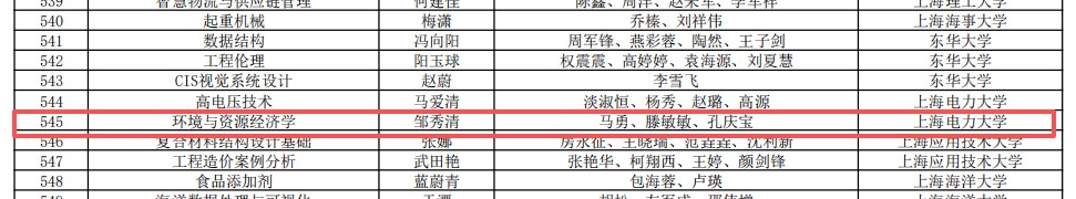 近日,教育部公布了第三批国家级一流本科课程认定名单,我院邹秀清教授作为课程负责人,马勇、滕敏敏和孔庆宝老师作为团队成员的《环境与资源经济学》课程成功入选为国家级一流本科课程(线上线下混合式)。这是我院第二门获得国家级一流称号的本科课程,标志着MG4355线路检测中心在积极进行“新文科”建设的背景下,在课程教学质量提升与教研成果创新方面取得重大突破,在复合型人才培养的课程建设探索方面迈上了新台阶。