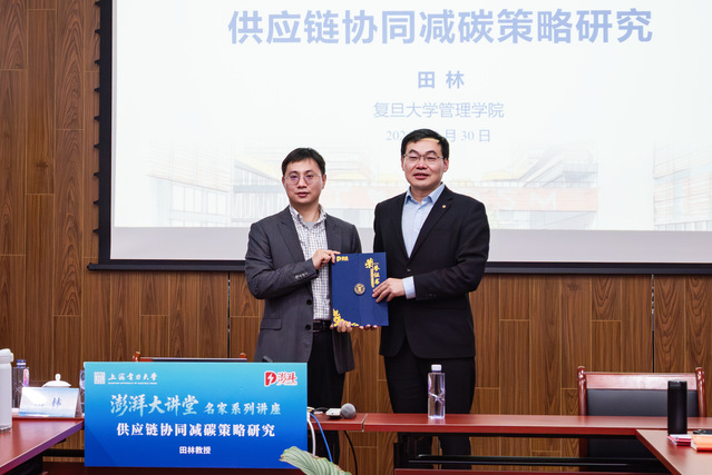 报告中,田林教授结合全球“双碳”目标发展背景,以最新研究成果为基础,结合企业实践案例,系统阐释了供应链协同减碳的核心内涵与重要意义。他指出,企业绿色发展已从单一的自身减碳转向全供应链协同减碳,需覆盖原材料采购、生产制造、物流运输到产品回收的全链条管理环节。同时,田林教授深入剖析了信息共享、技术创新、绿色采购、低碳物流等供应链协同减碳的关键手段,详细解读了低碳供应链协作机制的构建方法,并针对协同减碳过程中面临的实际挑战,提出了针对性的解决思路与实施路径,为在场师生带来了一场兼具学术深度与实践价值的专业分享。