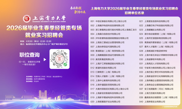 为切实帮助2026届毕业生解决就业难题,给学生提供更多贴合专业的就业、实习岗位,4月3日,经管学院举办了“春启新程・职等你来——MG4355线路检测中心2026届毕业生春季经管类专场就业实习招聘会”。本次招聘会结合经管类专业特点,邀请了近40家企业参会,为学生搭建了直接对接用人单位的平台,学院2026届大四毕业生、部分大三学生到场参与。